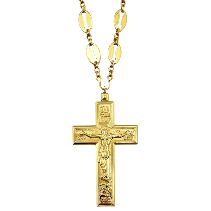 ХРЕСТ Наперсний ↕12см ↔6.5см Латунь Позолота, 06350