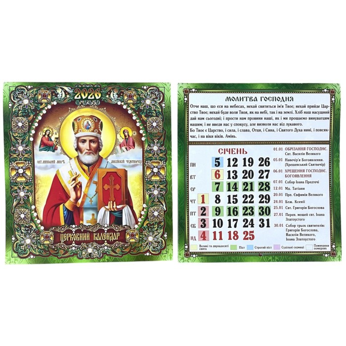 КАЛЕНДАР на 2026 рік «МИКОЛАЙ ЧУДОТВОРЕЦЬ» ЮЛІАНСЬКИЙ (Свята за новим стилем) УКР