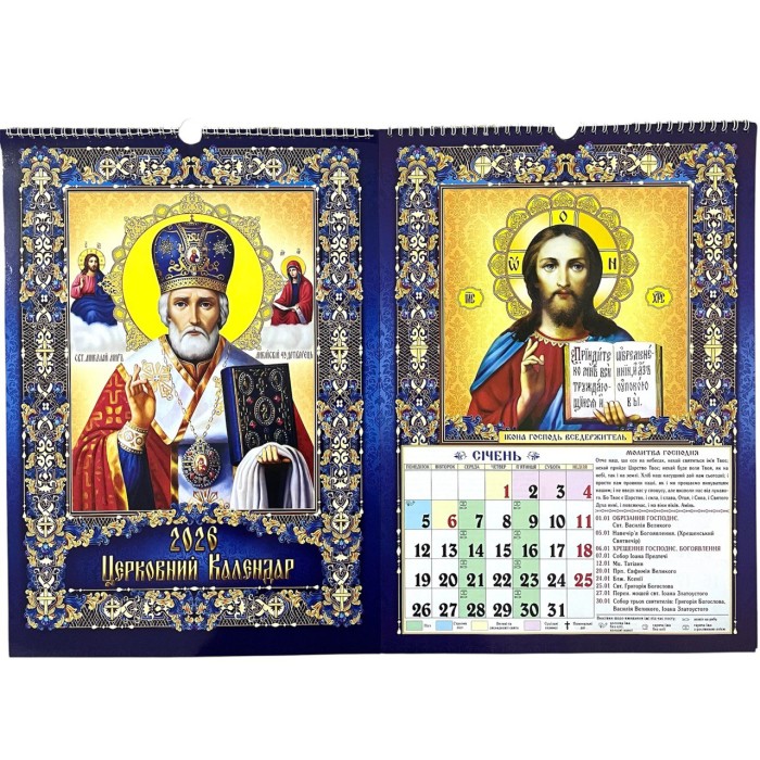 КАЛЕНДАР на 2026 рік «МИКОЛАЙ ЧУДОТВОРЕЦЬ» ЮЛІАНСЬКИЙ (Свята за новим стилем) УКР
