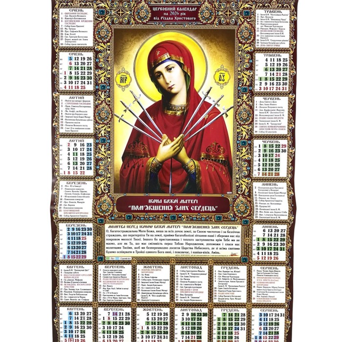 КАЛЕНДАР на 2026 рік Плакат А2 "ПОМ'ЯКШЕННЯ ЗЛИХ СЕРДЕЦЬ" ЮЛІАНСЬКИЙ (Свята за новим стилем) УКР