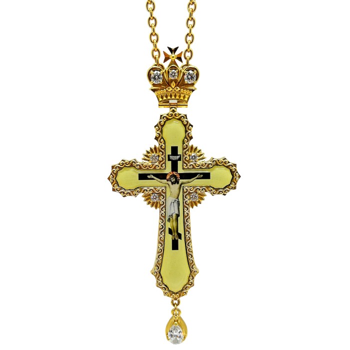 КРЕСТ Наперсный ↕15см ↔6,5см Латунь Позолота Цирконий 115 г, 06354