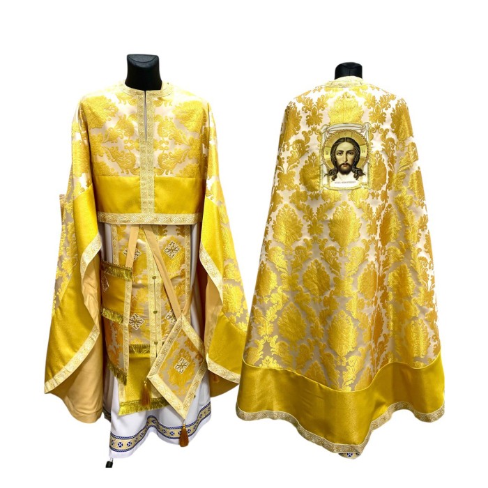 Облачення грецького крою ЖОВТЕ 54р /145д. ГрецПарча+Фактурна Т. (вишитий іконою Спас Нерукотворний )