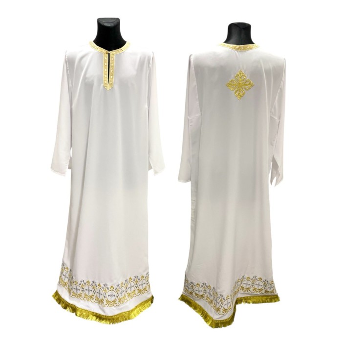 ПІДРИЗНИК Білий р52/д150см Мокрий шовк (золото-срібний хрест)