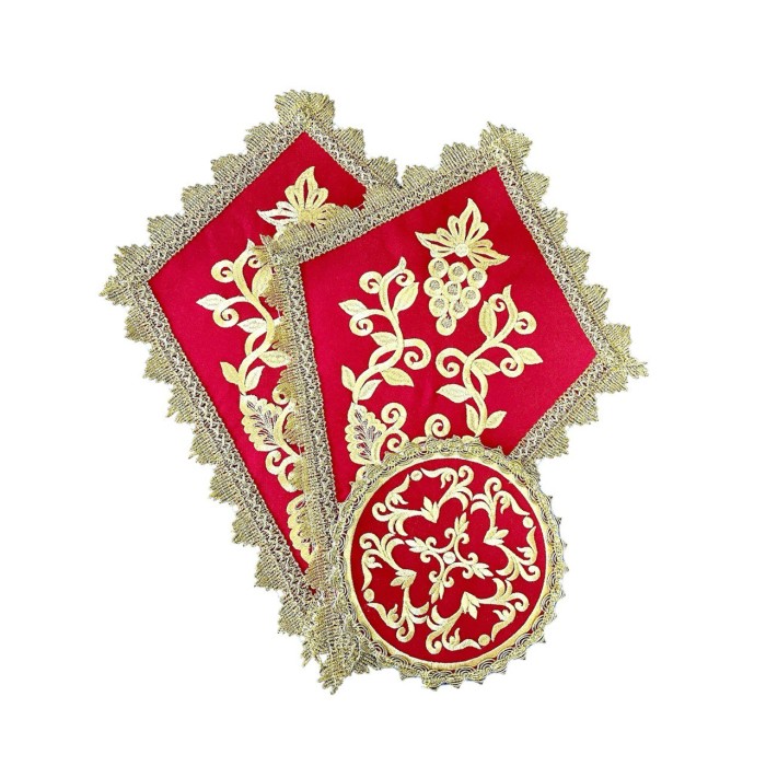 ПІДСТАВКА під хрест та лампаду ЧЕРВОНА КОМПЛЕКТ ↕42см ↔30см Ø16см Габардин Вишивка