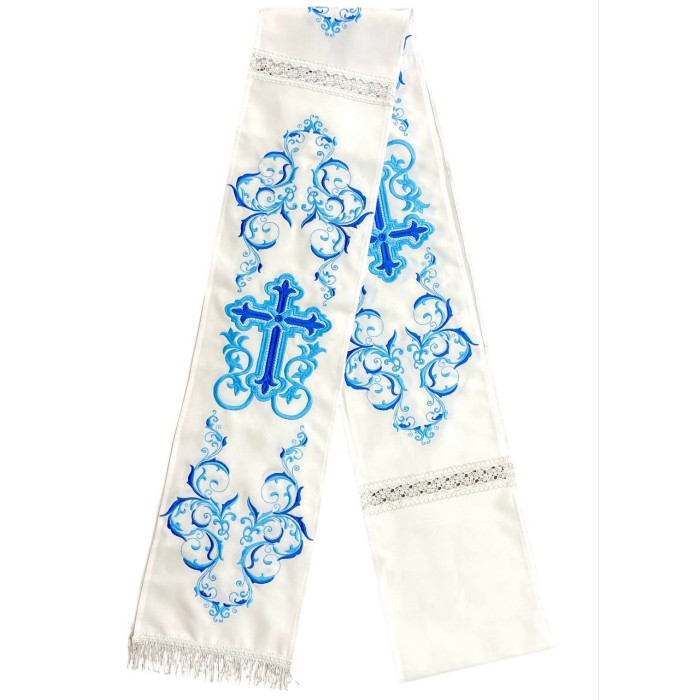РУШНИК НА ІКОНУ ↕25см↔380см Габардин, вишивка блакитно-синя мережка , мережево